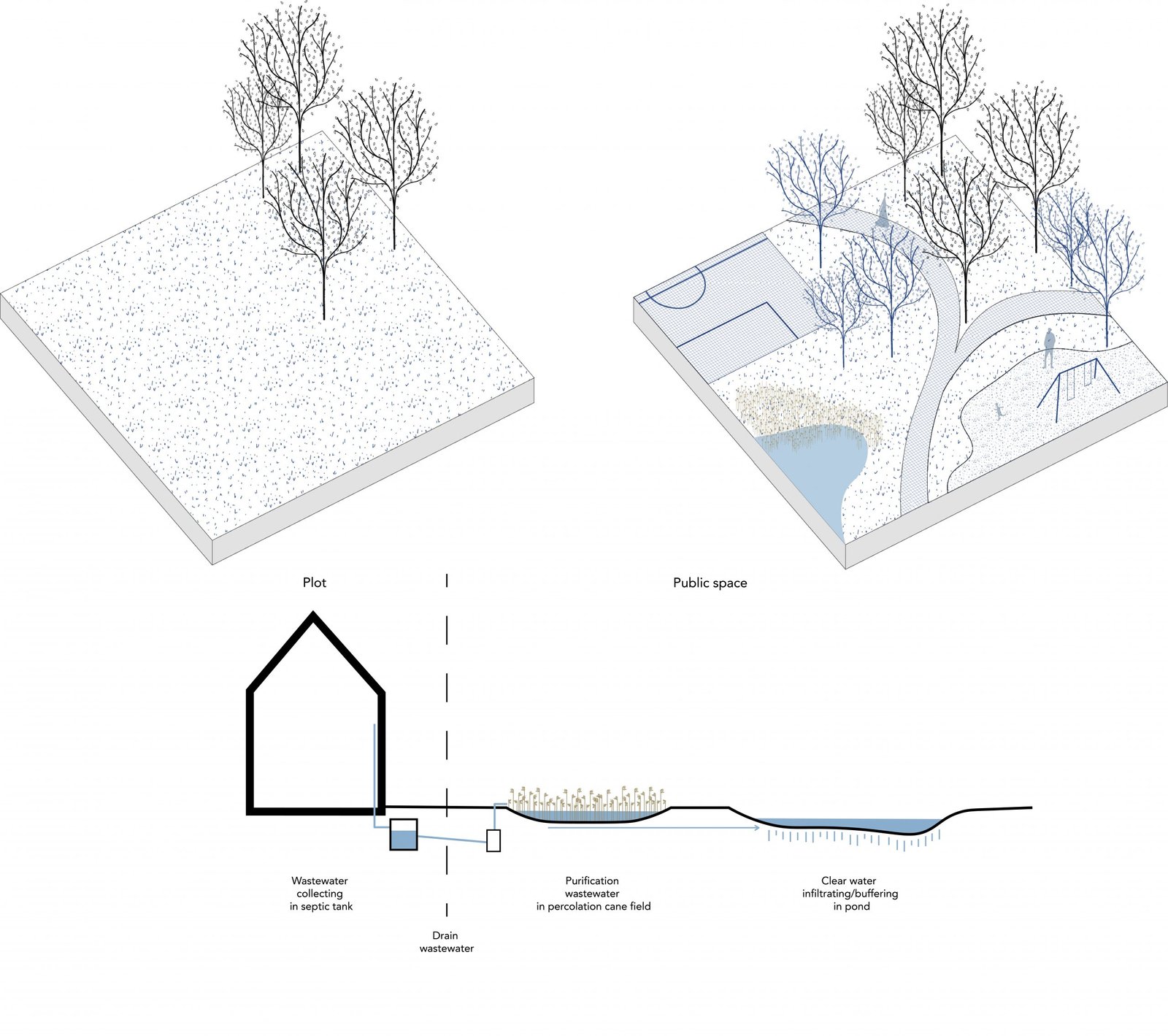 Dit project bestaat uit een masterplan voor Opoeteren, een dorpje gelegen in de Bosbeekvallei. Het masterplan biedt een oplossing voor de droogteproblematiek op het Kempens Plateau. Veel Vlaamse dorpen zijn volledig verkaveld en hebben geen plaats voor publieke of groene ruimte, de grootste oorzaak is de vele verharde oppervlakte. Deze verharding brengt veel extra problemen met zich mee, denk maar aan het Urban Heat Island Effect, het gebrek aan groen in een dorp of de overheersing van de auto’s in het straatbeeld. Aan deze problemen biedt het masterplan een oplossing door het dorp regenbestendig te maken.